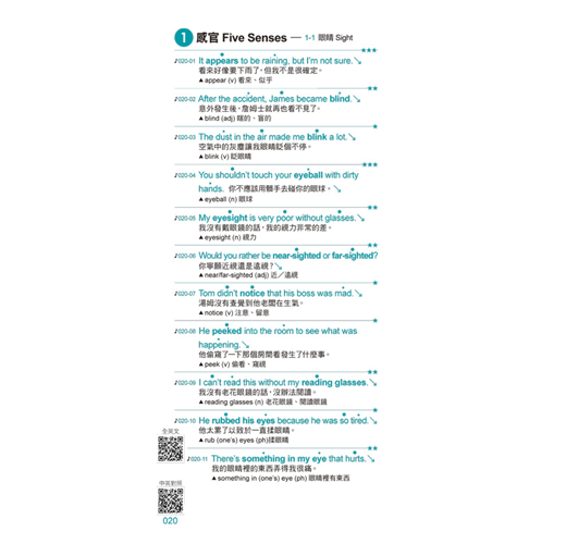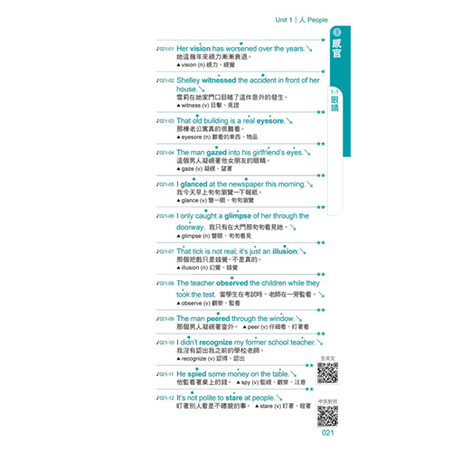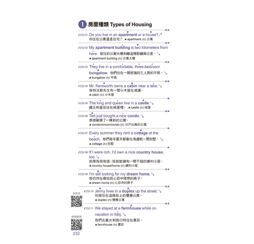■ 每一則例句搭配相關的「關鍵字彙、慣用語、句型」。
