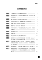 如今為了本書的修訂版,本人經過長達一年的思索—想想時代變了,防水工程已經成為營造業法中的專業營造業特定施工項目之一、臺灣營建防水技術士證照已經推動多年、世界知名品牌的防水材料也應運而生、德國及中國湖北的大學裡面也有「防水工程系」了,乃做大幅度的修訂。本人將畢生經驗有系統的整合、歸納,在觀念上及技術上提出淺見,提供給對專研防水工程有興趣的業者或從事者;其能拋磚引玉讓更多的防水師傅及材料研發人員投入,讓防水工程這個行業早點進入開發國家之林,也歡迎各位批評指正。