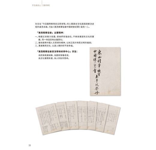 先生在「今日國際教育前沿思想等」的人類歷史文化困境與解決途徑的遠見卓識,可由《東西精華協會中國總會紀要》窺見一二。
