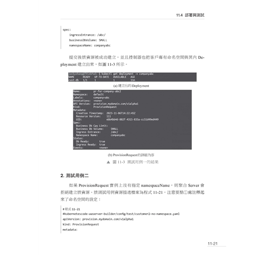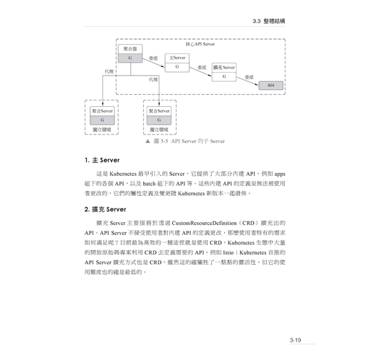 基礎篇 1 Kubernetes 與API Server 概要 ▌1.1 Kubernetes 組件 1.1.1 控制面上的組件 1.1.2 節點上的組件 ▌1.2 Kubernetes API 基本概念 1.2.1 API 和API 物件 1.2.2 API 種類 1.2.3 API 組和版本 1.2.4 API 資源 ▌1.3 API Server 1.3.1 一個Web Server 1.3.2 服務於API 1.3.3 請求過濾鏈與認證控制 ▌1.4 宣告式API 和控制器模式 1.4.1 宣告式API 1.4.2 控制器和控制器模式 ▌1.5 本章小結 2 Kubernetes 專案 ▌2.1 Kubernetes 社區治理 2.1.1 特別興趣組 2.1.2 SIG 內的子專案小組 2.1.3 工作群組 ▌2.2 開...
