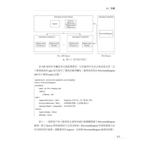 前言 為什麼寫作本書 毫無疑問,雲端平台已成為企業應用的主流支撐平臺,雲端原生作為可最大化雲端平台資源使用率的一套軟體設計原則備受業界推崇。談雲端原生就繞不開Kubernetes,它是雲端原生應用的底座:容器技術的普及加速了單體應用的微服務化,微服務化是實現雲端原生諸多原則的前提條件,而微服務化必須解決服務編排問題,Kubernetes 就是為了解決這個問題而生的。眾所皆知Kubernetes源自Google 內部產品,其前身已歷經大規模應用的實踐考驗,又有大廠做後盾,一經推出便勢如破竹,統一了容器編排領域,成為事實上的標準。從應用層面講解Kubernetes 的書籍與資料已經十分豐富,這使捲動更新、系統自動伸縮、系統自愈等曾經時髦的概念及在Kubernetes 上的配置方式現如今早已深入人心,但作為軟體工程師,不僅可得益於Kubernetes 提供的這些能力,同樣可受益於它內部實現這些能力的方式,理解其精髓可顯著提高工程師的業務水準,而這就鮮有除原始程式之外的優秀資料了,本書希望在一定程度上彌補這方面的缺憾。筆者選取Kubernetes 的核心元件——API Server 進行原始程式碼講解,從程式等級拆解控制器模式、認證控制機制、登入鑑權機制、API Server 聚合機制等,力爭涵蓋API Server 所有核心邏輯。為了緩解理解原始程式的枯燥感,筆者增加數章擴充開發的實踐內容,也使學習與應用相輔相成。 帶領讀者體驗Go 語言魅力是寫作本書的另一個目的。 Go 語言誕生於2007 年,靈感來自一場C++ 新特性佈道會議中發生的討論,現如今已經走過17 個年頭。Go 語言的創立者大名鼎鼎,一位是C 語言建立者Ken Thompson,另一位是UNIX 的開發者Rob Pike,可以說Go 語言的起點相當高。這門新語言確實不辱使命,主流的容器引擎均是用Go 語言開發的,Kubernetes 作為容器編排的事實標準也使用Go 語言開發,單憑這兩項成就就足以證明其價值。 Go 語言在伺服器端應用程式開發、命令列工具程式開發等領域應用越來越廣,作為開發語言界的後起之秀,Go 語言具有後發優勢。以Go 語言開發的應用被編譯為目標平臺的本地應用,所以在效率上相對依賴虛擬機器的應用有優勢;它在語法上比C 語言簡單,記憶體管理也更出眾,具有好用性,而相對C++,Go 語言更簡單,使用者也不用操心指標帶來的安全問題。如果只看語法,則Go 語言是相對簡單的一門程式語言。若有C 語言基礎,則上手速度幾乎可以用小時計,但要充分發揮Go 語言的強悍能力則需對其有較為深入的理解和實踐。為了幫助開發者更進一步地使用它,Go 語言團隊撰寫了Effective Go 一文,舉出諸多使用的最佳實踐,這些最佳實踐在Kubernetes 的原始程式中被廣泛應用,這就使學習Kubernetes 原始程式成為提升Go 語言能力的一條路徑。 目標讀者 本書內容圍繞Kubernetes API Server 原始程式碼展開,力圖型分析清楚它的設計想法,其內容可以幫助以下幾類讀者。 1. 希望提升系統設計能力的開發者 他山之石,可以攻錯。 入門軟體開發並非難事,但要成為高階人才去主導大型系統設計卻實屬不易。優秀架構師在能夠遊刃有餘地揮灑創意之前均進行了常年累積。除了不斷更新技術知識、學習經典設計理論、在實踐中不斷摸索外,從成功專案中汲取養料也是常用的進階之道。Kubernetes 專案足夠成功,其社區成員已是百萬計。它聚數十萬優秀軟體開發人員之力於一點,每個原始檔案、每個函數均經過認真思考與審核,其中考量耐人尋味。從原始程式分碼析Kubernetes 的設計正是本書的立足點。 API Server 所應用的諸多設計實現為開發者提供了有益參考。例如控制器模式、認證控制機制、各種Webhook 機制、登入認證策略、請求過濾的實現、OpenAPI 服務說明的生成、Go 程式生成機制、以Generic Server 為底座的子Server 建構方式等。上述每項設計想法均可應用到其他專案,特別是用Go 語言開發的專案中。 本書中包含大量原始程式碼的講解,需要讀者具有基本的Go 語言語法知識;同時,當涉及Kubernetes 的基本概念和操作時本書不會深入講解,故需要讀者具備Kubernetes 的基礎知識。不過讀者閱讀本書前不必成為這些方面的專家。 2. Kubernetes 運行維護團隊成員、擴充開發人員 知其然且知其所以然始終是做好軟體運行維護工作的有力保證。了解Kubernetes 功能的具體實現可讓運行維護人員對系統能力有更深刻的認識,提升對潛在問題的預判能力,對已出現的故障迅速定位。相較於軟體開發工程師,運行維護工程師一般不具備很強的開發能力,所以探究原始程式會比較吃力。本書有條理地帶領讀者厘清API Server 各個組件的設計,降低了原始程式閱讀的門檻。 筆者始終認為Kubernetes 最強的一面恰恰是它最被忽視的高擴充能力。根據公開報導,科技大廠(如Google、AWS、微軟、字節跳動等)均有利用這些擴充能力做適合自身平臺的客製化。目前講解API Server 客製化的資料並不系統。本書希望將API Server 的客製化途徑講解清楚:既介紹擴充機制的原始程式碼實現,又講解如何利用擴充機制進行客製化開發,希望為擴充開發人員提供相應參考。 3. 希望提升Kubernetes 知識水準的從業者 由表及裡是領會任何技術的自然過程。隨著最近三年線上辦公的火爆,雲端平台的普及大大加速,Kubernetes 作為雲端應用的重要支撐工具已被廣泛應用,一批優秀的系統管理員在成長過程中開始產生深入了解Kubernetes 功能背後原理的需求