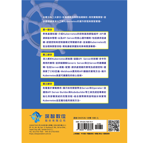 本書分為三大部分,從基礎概念到原始碼解析,再到實戰開發,逐步帶領讀者深入了解Kubernetes的運作原理與開發實踐。第一部分聚焦基礎知識,介紹Kubernetes的控制面與節點組件、API資源與版本管理,以及API Server的核心運作機制,包括請求過濾鏈、認證控制和控制器模式等關鍵內容,並涵蓋Kubernetes社區治理與開發流程,幫助讀者掌握如何參與開源專案。第二部分深入解析Kubernetes原始碼,涵蓋API Server的架構、命令列應用的實現,並詳細講解Generic Server與主Server的建構邏輯,包括Server啟動、配置、請求處理鏈的實現及認證控制,還探索了CRD定義、Webhook應用和API擴展的實現方法,揭示Kubernetes高度可擴展性的核心技術。第三部分則著重於實戰應用,展示如何開發聚合Server和Operator,並運用API Server Builder與Kubebuilder等工具完成從專案初始化到部署測試的完整流程,結合實際案例說明設計與實現Kubernetes自定義功能的高效方法。