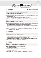 廣受好評的「考前速成攻略」也進行內容全面更新,將各年度出現頻繁的文法觀念用句型的方式系統化統整,並附上句子對照與出處,幫助同學在考前衝刺時刻,能立刻抓住重點複習,掌握重要基礎概念及句型。