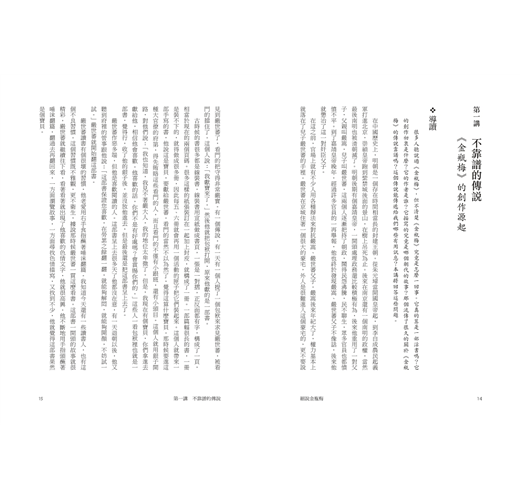 ★魯迅和張愛玲都曾盛讚《金瓶梅》為千古奇書,它在全世界的影響力甚至超過《紅樓夢》。大多數人認為它是淫書,其實當中的色情文字占全書比例不過百分之一。★