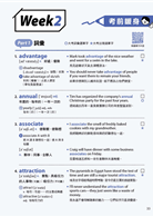 本書以「週」為單位進行規劃,協助學生循序漸進地學習與複習。前10週的每個單元分為兩大部分:「考前暖身」與「實戰應用」。「考前暖身」包含三個部分:Part 1單字、Part 2片語、Part 3句型,內容精選自學測常考重點,涵蓋高頻字彙、必備片語與重點文法,幫助學生在閱讀與寫作中靈活運用。此外,每個詞語與句型皆搭配中英對照例句,協助學生掌握實際語境中的用法,進而提升理解與應用能力。「實戰應用」涵蓋學測七大題型,包括詞彙題、綜合測驗、文意選填、篇章結構、閱讀測驗、混合題,以及中譯英與英文作文。透過豐富的題目練習,學生可提早熟悉出題形式,並立即檢視學習成果,逐步強化應試能力。第11週與第12週則規劃兩回完整模擬測驗,依照學測英文試題的結構與出題邏輯設計,幫助學生進行最終總複習,全面檢視實力,提升臨場應考的信心與表現。
