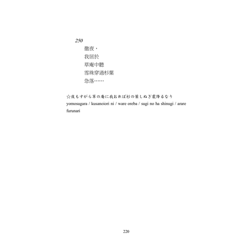這不僅僅是一本詩選,更是詩人真實生命的流轉。他以簡淨語言書寫自然、人情與禪意,詩句如風、如月,如孩童的手毬,真摯無偽。無論是與童子遊戲、與友人唱和,或獨坐庵中望月、雪夜沉思,他的文字始終洋溢著慈悲與自由。