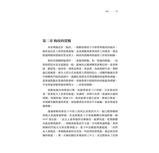 從路加福音到使徒行傳,如彼得前書(1:12)所說,只有當這些事「靠著從天上差來的聖靈」宣講時,亦即只有用「聖靈和大能的明證」所講的道(林前2:4),悔改赦罪才隨之而來。使徒行傳是一本明顯有關聖靈的書卷,而保羅書信中則有不少篇幅,提及聖靈多過耶穌。