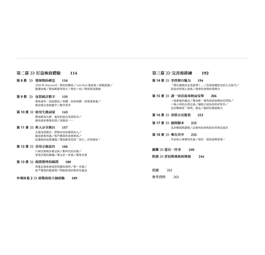 詳細解讀賈伯斯的經典產品發表會,如iPod、iPhone、MacBook Air、iTunes、Leopard等,透過有條理的18堂課分析,和一目瞭然的表格說明,幫助你系統化學習。想將顧客變成品牌粉絲,有這本就夠!