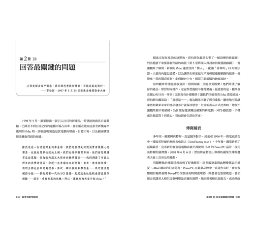 本書主旨並不是要全面探討賈伯斯的一生,這不是他的傳記,也不是蘋果公司的歷史。本書關注的不是賈伯斯「老闆」,而是他做為宣傳溝通者的角色。你將學到賈伯斯如何完成以下每一件事: