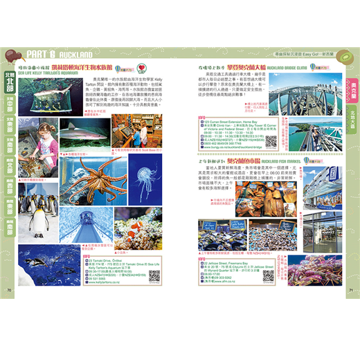 【奧克蘭】紐西蘭的舊首都,有「風帆之都」之稱,是國家第一大城市,擁有多個好玩遊點,如天空之塔、凱莉塔頓海洋生物水族館、奧克蘭魚市場、鬼屋主題樂園Spookers、奧克蘭夜市等等。
