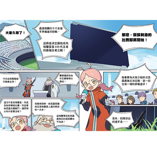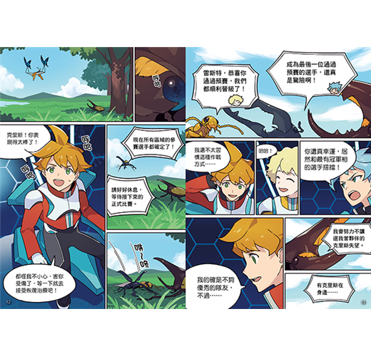 本書將透過第一回合的三場戰鬥,一一闡述主角們過去的回憶與現在的戰鬥目的,情節精采緊湊,除了昆蟲們驚人的戰鬥絕招,還有人們互相扶持與對立所形成的力量……在邁向王者之路的過程中,同時考驗著人性與意志力,以及人和昆蟲間的默契與信任。
