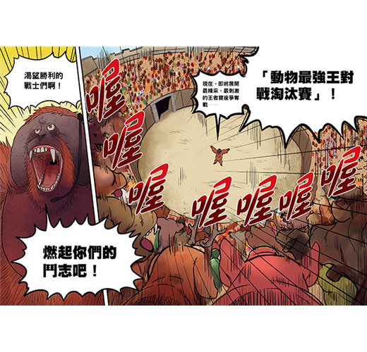 接下來,除了準備戰鬥的選手們,其他各種類的動物也紛紛聚集到著名的「伊爾捷競技場」,牠們為了一場場精采的對戰歡呼著,期待新王者的誕生,準備見證沒有人類存在,由動物統治世界的歷史時刻!