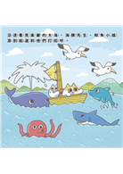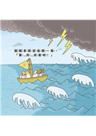 大海波光粼粼,還有好多海洋動物和他們打招呼。可是不久後,天空開始佈滿烏雲,一場暴風雨颳起大浪將小船掀翻了。