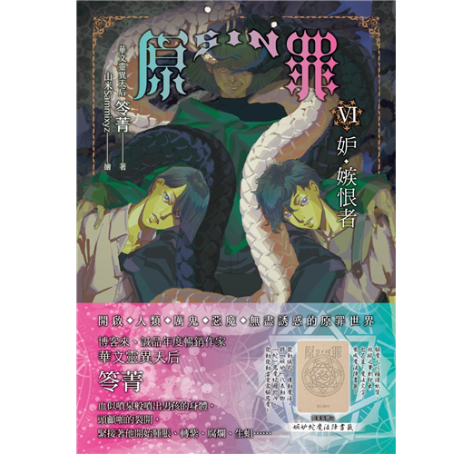 驅魔人以極優紙質,地獄之筆刻印出七芒星、魔法文字、生成魔法陣書籤,發動儀式、催動魔法,將「嫉妒」代表動物「蛇」惡魔絞困於內,發動雷電震驅惡魔!