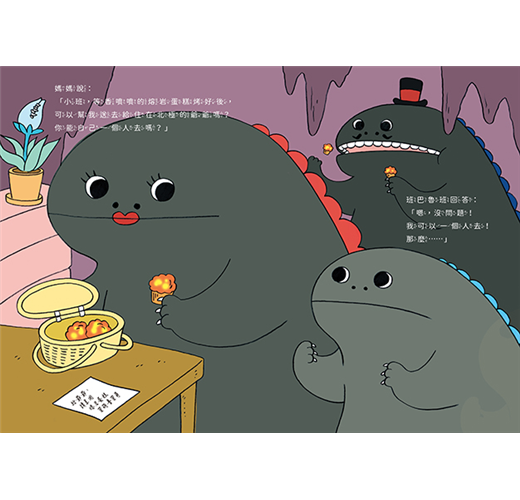有一天,媽媽拜託班巴魯班將一籃烤好的蛋糕送給住在北極的爺爺。