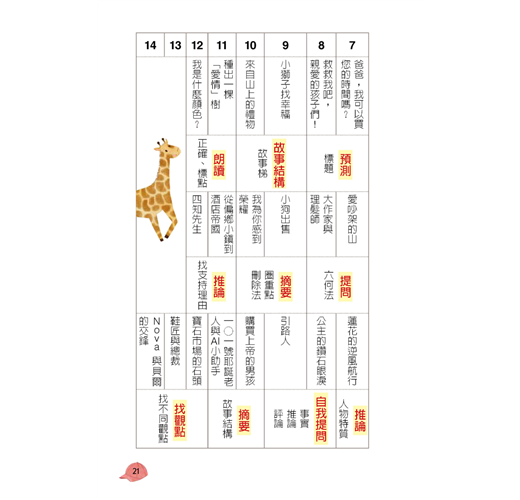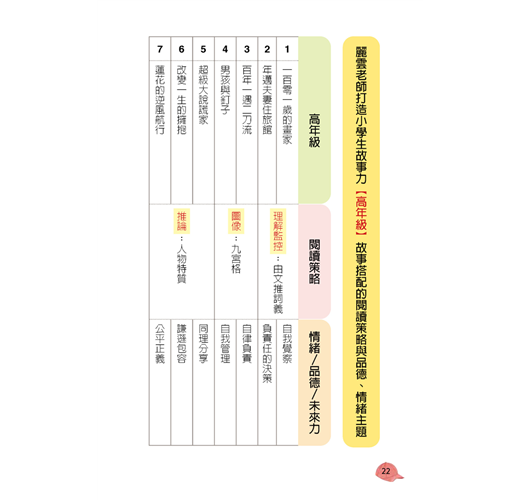 3.邊讀故事邊學習詞彙,為寫作力建立基本功,以及從每種主題的故事,拓展跨領域知識,訓練自我思考,培養正向好品格和學會管理情緒。