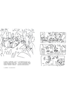 「如何讓兩個故事存在於同一個頁面上並共用一個場景,比起繪圖作業本身,更大的挑戰在於要怎麼組織故事情節,和怎麼在頁面中適當地布局。本書中的兩段故事是兩段相反方向的旅程:一個從森林去都市,另一個從都市去森林。」