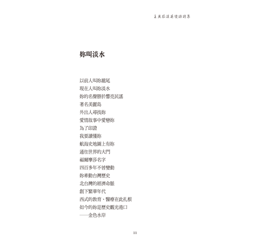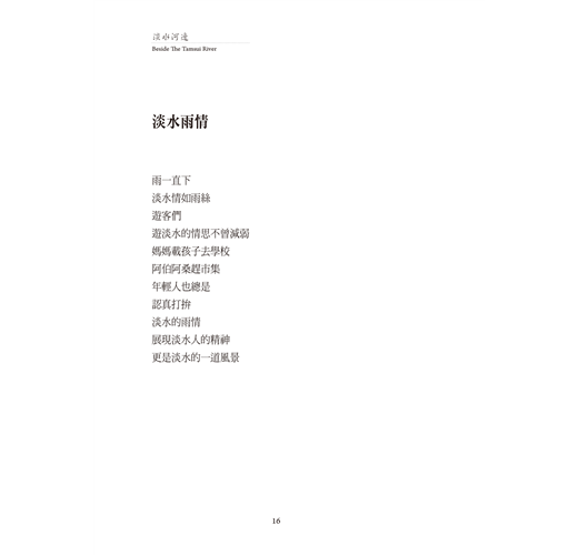 ★詩人以長年投入長照服務的第一線經驗為底蘊,真誠凝視老年、病痛與親情,也從長期在淡水生活的視角,細緻描摹地方風土。