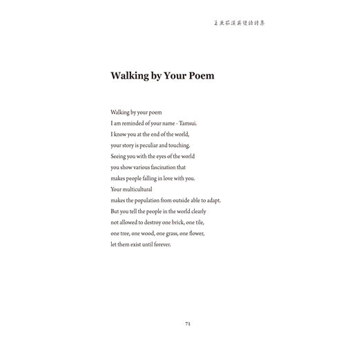 承蒙秀威資訊科技公司一本支援詩集出版初衷,慨然接受【台灣詩叢】列入編輯計畫,對台灣詩的國際交流,提供推進力量,希望能有更多各種不同外語的雙語詩集出版,形成進軍國際的集結基地。