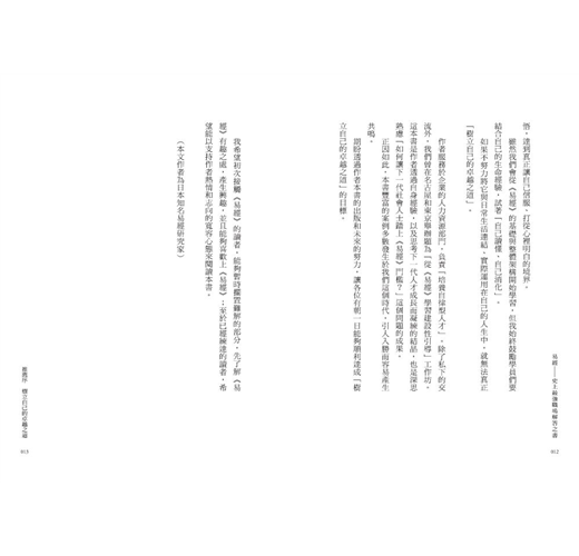 「本書是作者透過自身經驗,以及思考下一代人才成長而凝練的結晶,也是深思熟慮『如何讓下一代社會人士輕鬆踏上《易經》入門門檻』這個問題的成果。」──竹村亞希子,日本知名易經研究家