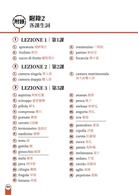 本書分為6課,結合食、衣、住、行、育、樂、旅行各種情境,從義大利語最實用的單字、句子、會話、文章,循序漸進,一步一步讓您扎穩基礎義大利語的根基!