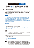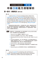 除了12回的試題,本書還提供了每回每題的參考答案和解析。由於中級的寫作和口說的出題方式比較屬於開放式的,所以並沒有所謂的標準答案,因此本書對每題的詳解會比較是以「翻譯技巧」、「句構與時態的重點」、「寫作的指引」、「分段的方法」、「答題技巧」、「會用得上的單字和句型」等引導式的方式進行,一步步地帶領讀者了解翻譯該注意的重點、作文的起頭接續與結尾的寫法、朗讀要注意的字詞、口說答題的重點等等,並給予許多的範例句,就算完全沒有準備也可以藉由本書的帶領一句一句的翻好文章、寫好作文、答完問題。而引導式的分析最後,還是會提供兩個範例答案,讓讀者可以看看一篇完整的文章、一個絕佳的回應應該會是怎樣。