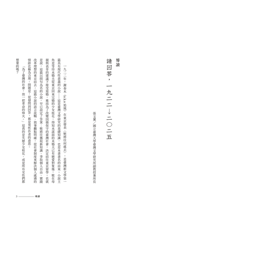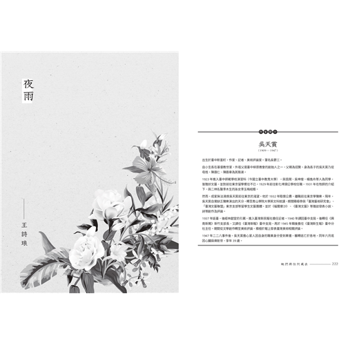 這些聯想當然必須在歷史的框架中產生真實,同時迴盪著鋼琴與流行歌謠的旋律,期待能帶給讀者至少兩種閱讀樂趣:一是在字裡行間辨識出臺灣歷史環節,指認出文學史人物;第二種是沉入角色心緒,吟味脈絡鋪陳的聽故事趣味。本書收錄了促發寫作動力的臺灣小說,包含已是代表作等級的〈財子壽〉、〈薄命〉、〈論語與雞〉,以及因爲題材的邊緣或風格的難解而較少被關注的〈夜雨〉、〈青春〉、〈蜘蛛〉、〈憂鬱的詩人〉,其中〈蜘蛛〉、〈憂鬱的詩人〉為全新中譯。我們幸運地擁有文訊、遠景等出版單位的支援,獲得與作家後人聯繫的管道,一同走上召喚臺灣文史記憶之路。藉著以故事喚醒文學的過程,展現混雜著日語、臺語、漢文與當代國語的聲音風景,重新思考百年前的她們,在「為了臺灣的社會,放一把革命的烽火」(〈她將往何處去〉)的振奮,以及「花卉盛開一時,才肯凋謝;我卻在含蕾未開,就要夭折」(〈青春〉)的悲憤之間,所經歷的心路軌跡。