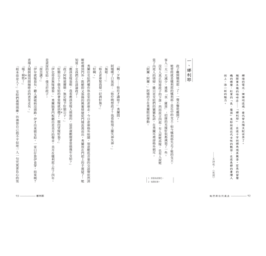 秀蘭一直把政子當成自己的姊姊,沒想到她會如此不告而別,從此毫無音訊。要不是因為女給們刻薄的流言蜚語未曾間斷,還有政子遺留在宿舍沒帶走的那幾套舊和服,秀蘭幾乎懷疑自己對政子的記憶是否真實存在過,那張堅毅卻溫柔的笑臉,那些深夜裡的輕聲鼓勵,以及總是為她阻擋驟雨狂風的頎長身影─從秀蘭踏進娜利耶的那一天開始,政子就一直照顧著她。