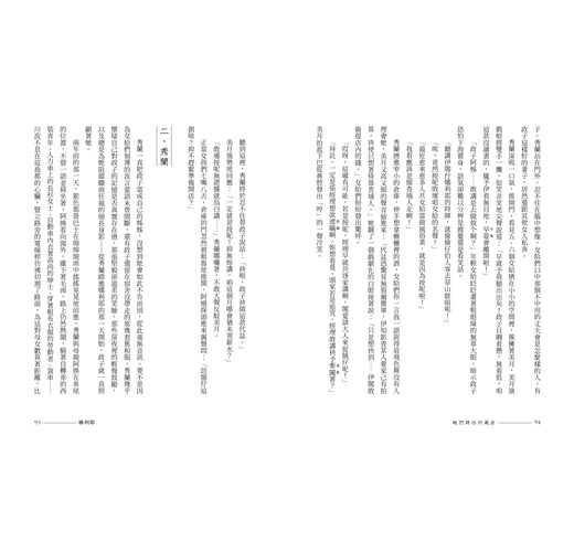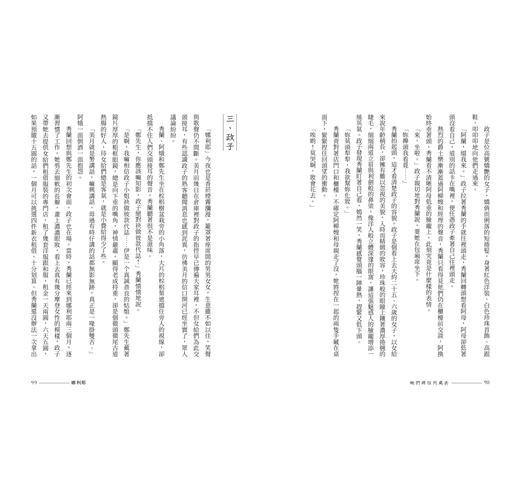 秀蘭覺得有道理,卻不覺得政子算計,反而更加尊敬她。政子讀過女高,很受知識分子、官紳們歡迎,不只國語流暢,能接待內地客人,還懂些漢文詩文,本島知識青年也都訝異她的談吐,那樣的氣質,是秀蘭欣羨卻又學不來的。