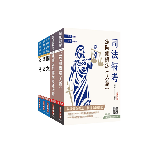★內含:國文+英文+公民+法院組織法(大意)+民事與刑事訴訟法大意,無敵組合,考科一網打盡!
