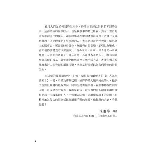 每位牧者、輔導者,甚至自認不會跌倒的基督徒,都值得細讀本書。
