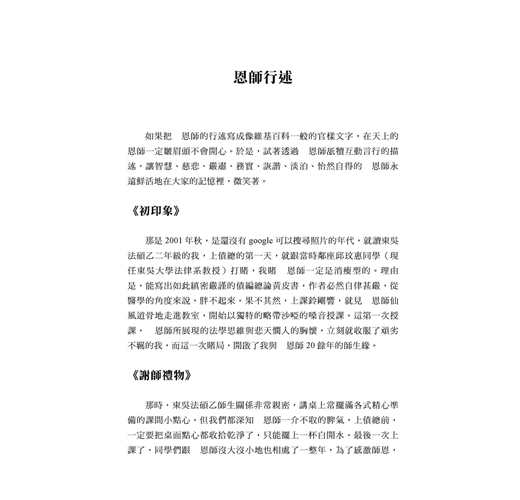 為紀念並傳承孫大法官森焱教授對司法職務之忠誠廉明、對學術之熱忱及對真理探求之執著,形塑並深化實務與理論交流的典範,於孫大法官森焱教授逝世週年之際,經本會董事會商討,認為出版孫大法官森焱教授紀念論文集最適合而具意義,乃洽請本會董事詹大法官森林教授主持,邀請孫大法官森焱教授之友人、同僚、晚輩及學生,撰寫紀念論文,由本會集結編輯為本書,定名為「民事裁判之理論實踐與民事法學之發展」,商請新學林出版股份有限公司編印出版,獻給在天上的孫大法官森焱教授。本紀念論文集之出版發行,迎接即將邁入百年之「民法」(民國十八年五月二十三日國民政府令制定公布總則編,並自同年十月十日施行),對提昇我國民事法學之進步及發展,溝通實務與理論交流,促進民法之現代化,應有所助益及貢獻,當為孫大法官森焱教授所樂見,並樂於接受。在本書出版發行前昔,爰謹綴數語,用表對孫大法官森焱教授之敬仰及追思紀念。