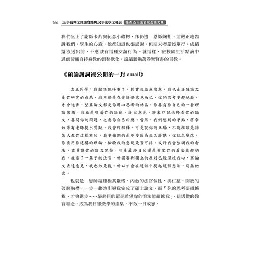 為紀念並傳承孫大法官森焱教授對司法職務之忠誠廉明、對學術之熱忱及對真理探求之執著,形塑並深化實務與理論交流的典範,乃邀請孫大法官森焱教授之友人、同僚、晚輩及學生,撰寫紀念論文,由民法研究基金會集結編輯為本書,定名為「民事裁判之理論實踐與民事法學之發展」,對提昇我國民事法學之進步及發展,溝通實務與理論交流,促進民法之現代化,俾有所助益及貢獻。