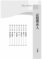 在記憶傳授人的帶領下,他漸漸看到他從未察覺的事情,思索到他從未涉及的議題。原來,這是一個非常平和,沒有高低起伏,沒有病痛,沒有飢餓,沒有放縱,沒有愛惡,沒有慾望,沒有陽光,沒有色彩,甚至沒有意外的社區。每個人都在既定的軌道上做自己當做的事。魚類養殖場服務員認真的提供社區人員營養、喜愛孩子的可當老師、強壯又有些懶散的可當孕母負責生孩子、養育員負責在育兒中心養育嬰兒、成家的人在適當的時期可提出認養孩子申請、老人在身體狀況不好時可以被「解放」、雙胞胎中體重較輕的一個,也遭遇「解放」的命運……每一個居民都不必顧慮下一步該怎麼走,也不必追究根由,甚至不必思考,因為只要顧好當下,一切就都有定數。萬一遇到突發狀況,還有最具智慧,承接整個社區過往經驗的「記憶傳授人」可諮詢。而喬納思之所以會被賦於這個使命,是他因他具備「超眼界」的能力──還保有看得見色彩的能力。