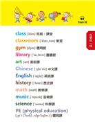 根據教育部所公布的基本英語字彙,精選300個常用單字,另外收錄200個孩子生活中常會使用到的單字。其中包含簡單的片語,讓孩子從基本的單字學習提升到片語的運用。