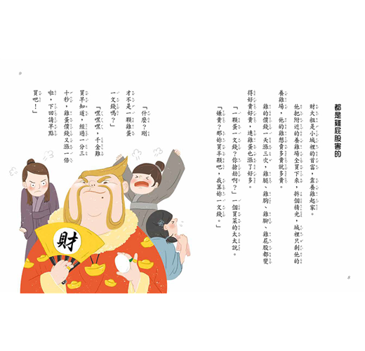 財大粗是小城裡的首富,他把附近的養雞場全買下來,拆個精光。城裡只剩他的養雞場,他的雞想賣多貴就多貴!這還不打緊,他借錢給老農夫,居然玩文字遊戲,把老農夫辛辛苦苦種的稻子全部割走,簡直欺人太甚!小狐仙決定幫老農夫出口氣,教訓一下這個天下無敵小氣鬼,於是他變身為一個年輕的農夫,笑嘻嘻的去敲財大粗的門,說是想借錢種作物……