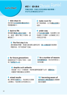 學過的詞組,若只是「知道」卻沒實際用過,很快就會忘記。書中設計多階段練習 (Phrase in Action → Phrase Recall → Phrase Remix → Expand),讓你透過中英轉換、語境應用、生活化造句等方式反覆訓練、深度學習,將詞組從短期記憶轉化為語言直覺。這不僅是「學會」,而是「用得出」,只要確實跟著本書做練習,對於寫作、翻譯、口說能力的提升將非常有感。