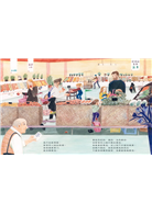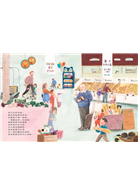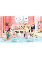 就像日常生活中的其他地方一樣,超市也是孩子的學習場所。繪者克勞蒂亞.布爾邁斯特繪製了14幅色彩繽紛、細節豐富的圖畫,連小小孩也很容易產生親切感。
