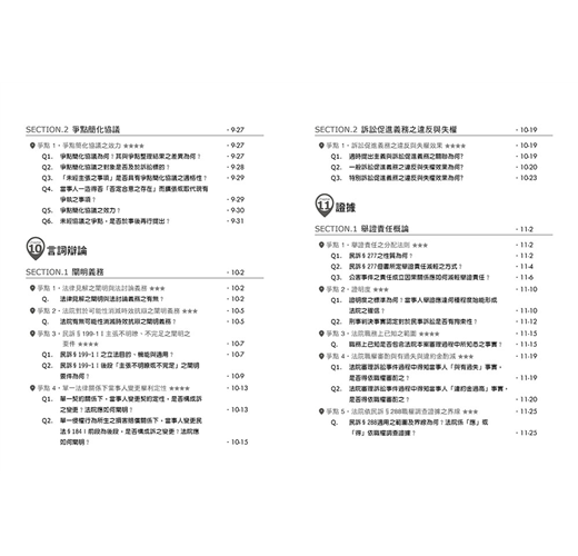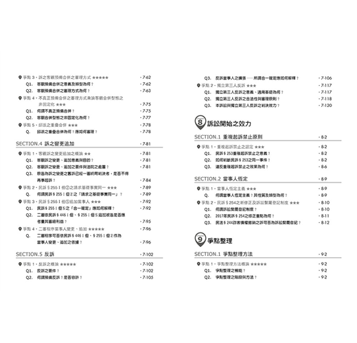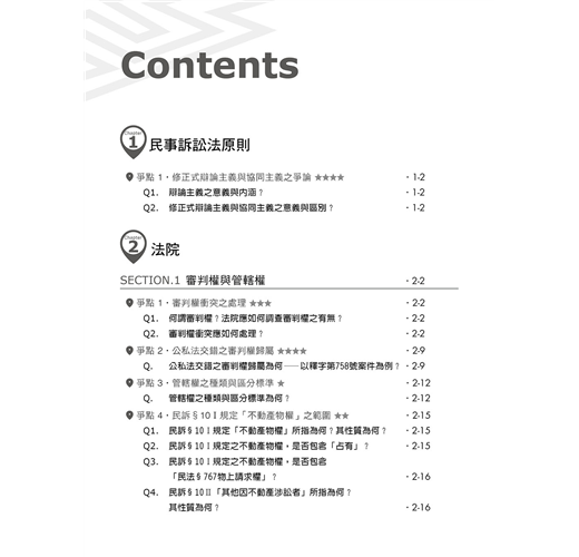 本書在各爭點皆標示星等,讓同學在考前衝刺階段,得參酌星等難易度及重要性,有效率地進行複習。
