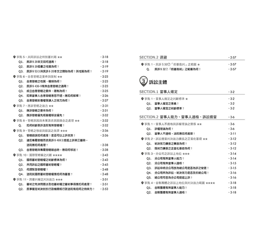 每一次改版,都是與自己的對話。過去一年,在法院與事務所間奔走, 處理著一件件真實且複雜的案件,愈發體認到民事訴訟法不只是法條與理論的拼圖,更是制度與人性交錯運行的現場。這些經驗,也促使我再次回望書中內容,力求能更貼近實務、更契合考試、更能回應初學者的需要。期望本書在新的一年,能繼續成為讀者在國考路上的總複習講義、工具書與掃盲書。