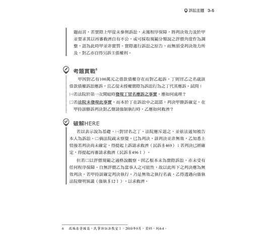 雖然本書在老師們眼裡是本不入流的補習班講義,但筆者仍秉持著對民事訴訟法大大的熱情,把本書當論文在寫,希望能帶給讀者小小的啟發。