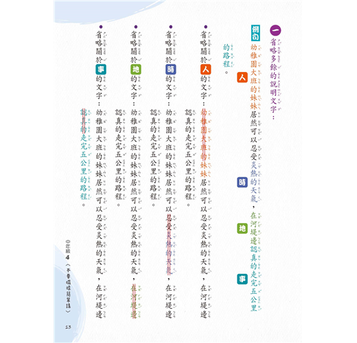 國小中年級是寫作的鍛鍊期,這個階段要將「短句拉長」,並「串成連貫的段落」,進一步「組成主題明確、文句通順」的作文。