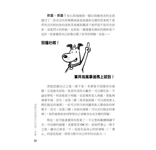 「本書不負眾望,如同先前版本一樣,令人愛不釋手,新增修的精采內容與風貌,更是大幅超越舊版的風采,引人入勝……正面、積極、讓人開懷、振奮、自信心大振……文字風格清新、簡潔,毫不拖泥帶水,孩子自行覽讀也能夠通曉無阻。」——芭芭拉‧英格索爾博士,美國《家有過動兒》作者