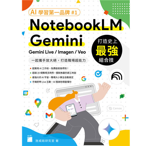 本書完整揭露 NotebookLM 與 Gemini 的強大功能,並提供滿滿的經驗分享和應用案例,讓 AI 不再只會「出一張嘴」,而是無縫整合日常使用的 Gmail、Google 文件、試算表、雲端硬碟和 Google 地圖,打通 AI 應用的「最後一哩路」!無論你是行銷企劃、社群小編、業務人員、秘書助理、人資總務,還是工程師或主管,都不可錯過 AI 世代的辦公神技!