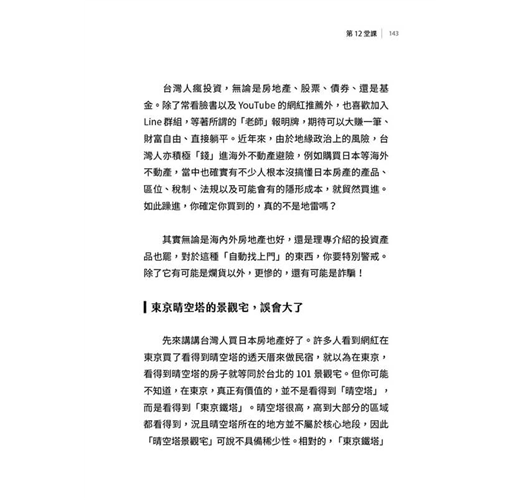• 警惕主動上門的投資:教你辨別好物件與理財陷阱。