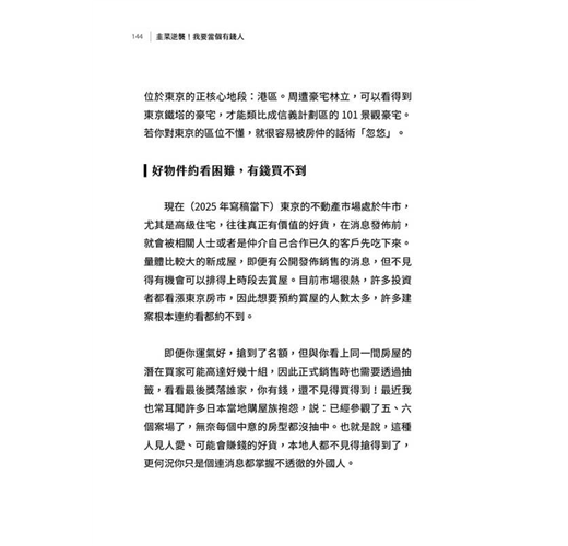 擁有日本不動產經紀人(宅建士)證照,資產配置橫跨台日美股、台日房產、債券與基金、黃金及虛擬貨幣。曾出版過『日本買房關鍵字』、『日本買房大哉問』等多本買房投資書籍,以及『穩紮穩打!新日本語能力試驗』等考試用書,皆由想閱文化獨家發行。
