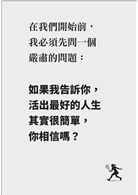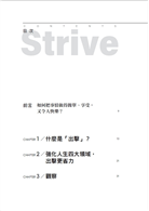 所謂「STRIVE」是一套生活行動法,不需要大破大立、建立打卡清單、早起冥想或挑戰極限,只需要每天安排八個關鍵行動:觀察、感恩、平衡、充實、撫慰、信念、啟發與出擊,從每天的第一口食物,到最後一個念頭,逐步建立屬於自己的穩定配速,讓巔峰狀態不再是偶發,而是日常的節拍。