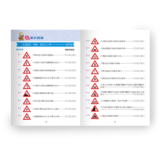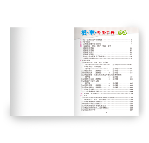 本書特別企劃收錄中華民國道路交通號誌.標線及機車考照等,最新各式交通規則題庫及最新120題的情境式考題,並附上專利商品紅色遮色膠片,只要覆蓋在解答 上,就能輕鬆自我檢測,讓考取駕照變得更方便!