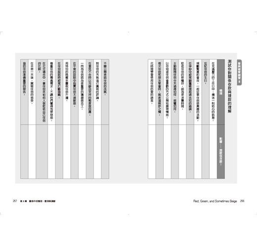 從關係的開始、過程、到後續維持,本書提供了縱貫性的完整建議。書中羅列出紅旗、綠旗、米色旗等行為指標,用以觀察對方是否具備經營健康關係的潛質,帶領讀者深入了解自己在關係中,提不起力量的深層原因,進而達到自我成長與改變。