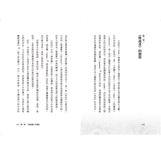 《奧義書》是印度傳統哲學主流派別之一「吠檀多學派」的經典,現存的文獻顯示有兩百部之多,而被稱為核心《奧義書》的則只有十多部。本書一開始就談到《奧義書》的價值,為讀者對《奧義書》的由來,以及它對人類精神文明的貢獻,做了非常簡扼而有用的介紹。